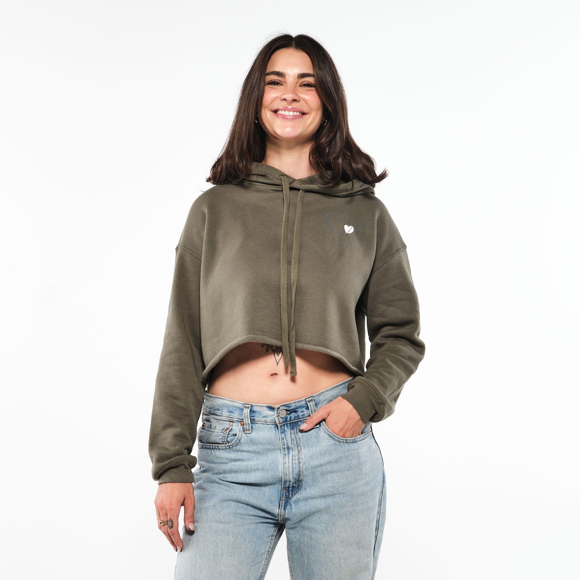 Soft, warm, and made for comfort. This midweight cropped hoodie features a printed design that celebrates care and connection, with a roomy hood and a classic kangaroo pocket. The layer you reach for on repeat.